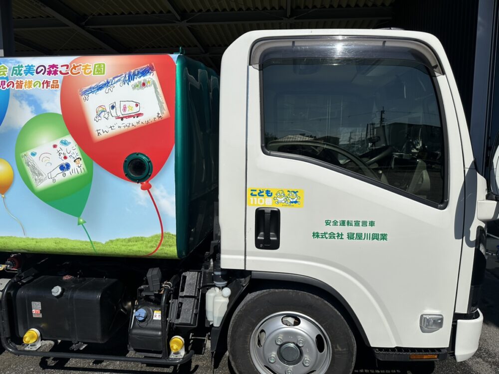 さらに、すべてのパッカー車・コンテナ車に「こども110番」シールを掲示しています。