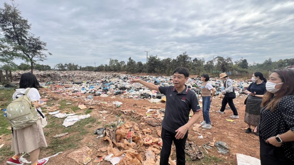 ラオスの首都ヴィエンチャンの郊外に設置された最終処分場や、医療廃棄物や資源循環の課題解決のお手伝いを目的に設置された 加山興業さんの現地事務所の見学からスタートです。LAO KAYAMAのように、埋立と焼却・燃料化などを組み合わせて、ビジネスとして廃棄物問題に取り組む現場を紹介。