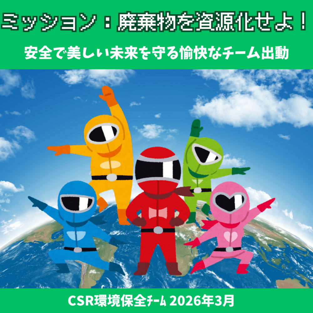 捨てるはずだったものを資源にし、子どもたちのための安全で美しい未来を守るために、チーム一丸となって全力で突っ走ります!🏃♂️💨 新体制となった今年度も、CSR環境保全チームの応援をよろしくお願いします!